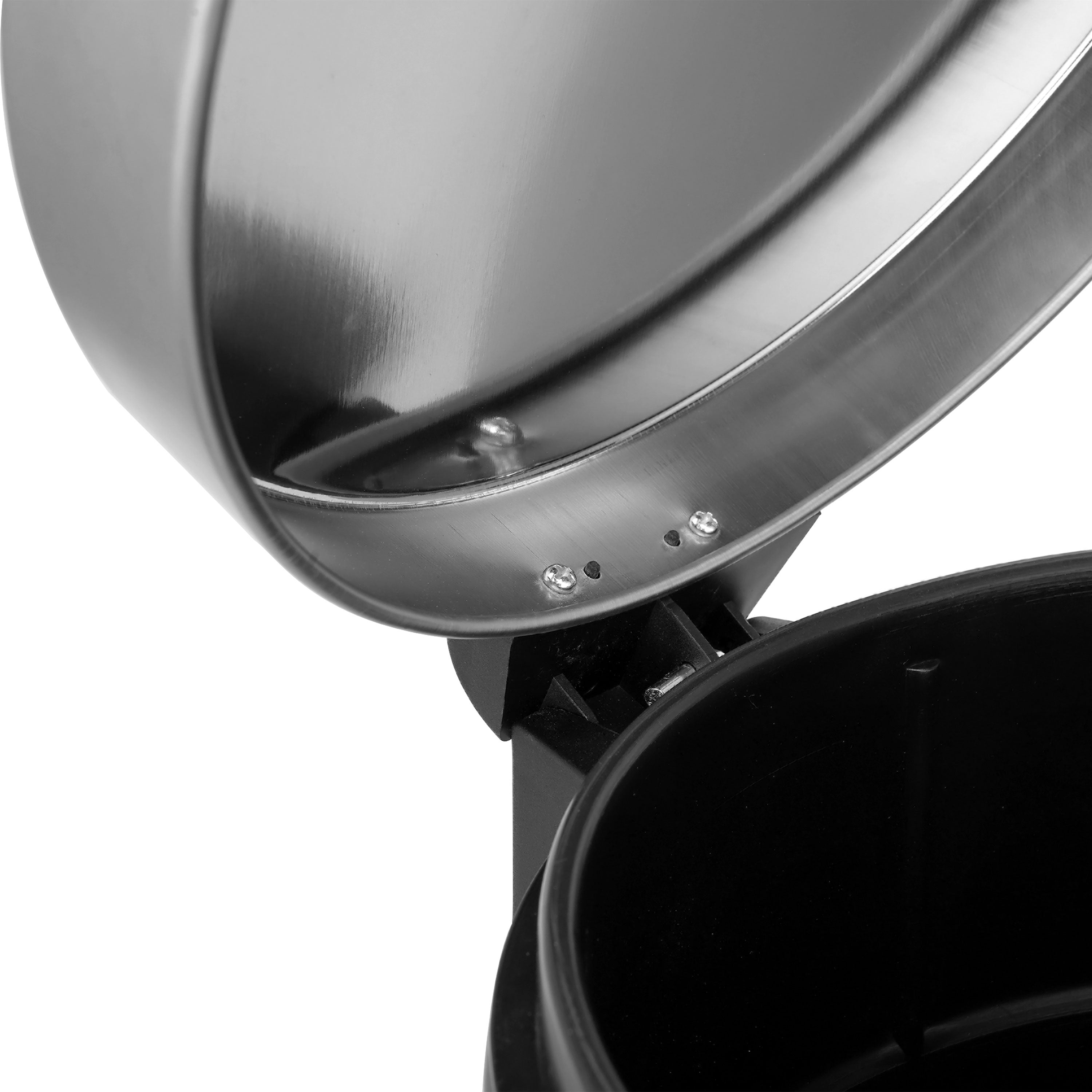 A classic round shape 8 gallon/30 liter stainless steel trash can with hands free operation and a quiet slow close lid. The strong foot pedal structure will provide many years of trouble free use. A removable inner plastic bucket can be used with or without a trash bag. A large handle makes for convenient moving and lifting. A non-skid base keeps the trash can steady and protects floors. In brushed stainless steel with fingerprint free finish.
